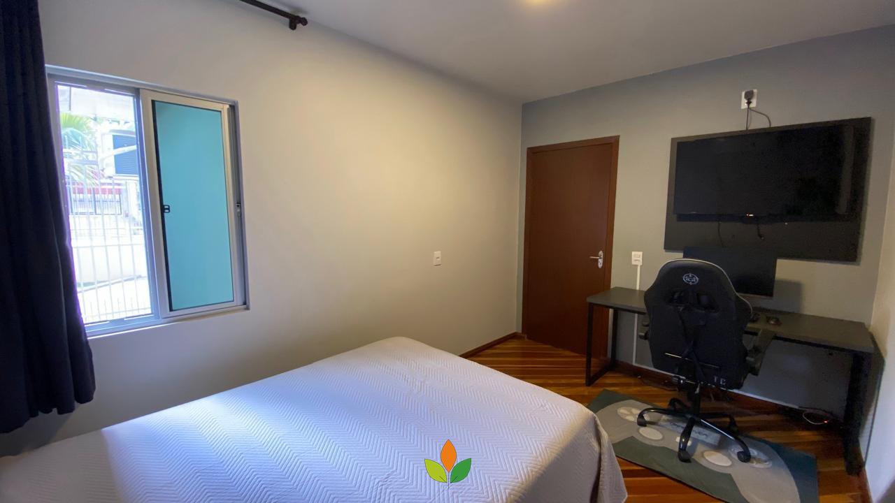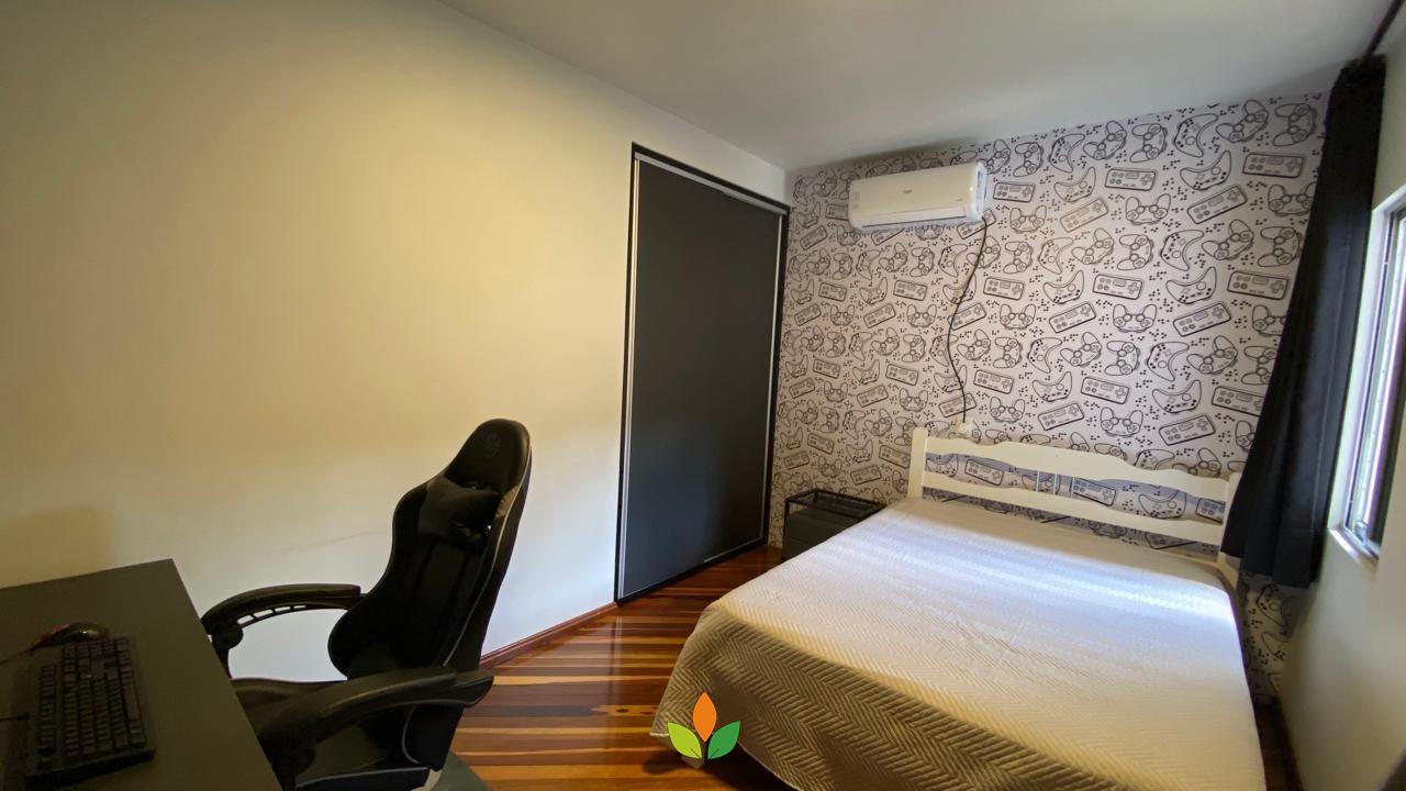 O imóvel conta com 2 quartos (sendo 1 suíte), sala aconchegante, banheiro social, varanda e 2 vagas de garagem. O acabamento em madeira traz um toque acolhedor, complementado por móveis planejados na cozinha, banheiro e dormitório. Totalmente mobiliada e pronta para morar, dispõe ainda de ar-condicionado, área de serviço, despensa, lavanderia e portão eletrônico.